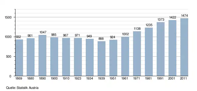 Nachdem die Bevölkerung in der Zwischenkriegszeit zurückgegangen war, erholte sich die Bevölkerungszahl nach dem Zweiten Weltkrieg wieder und steigerte sich bis heute. Von 1951 bis 2001 stieg die Bevölkerung um 50 %.