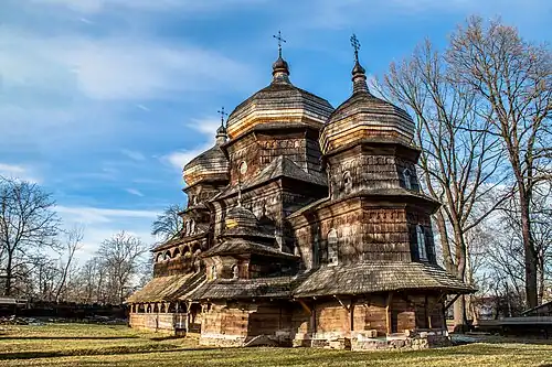 Die Kirche gehört zum galizischen Typus der Holzkirchen, wie die ebenfalls zum Welterbe gehörende Paraskewi-Kirche in Radruż (Polen) und die Heiliggeistkirche in Potelytsch sowie die Dreifaltigkeitskirche in Schowkwa (beide Ukraine).[2]