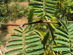 Zweig mit Dornen und doppelt gefiederten Laubblättern