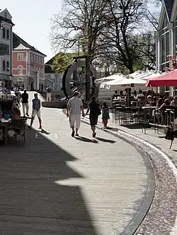 Ende 2010 wurde nach einer halbjährigen Umbauphase die Gerberstraße wiedereröffnet. Bei den Umbaumaßnahmen entstand ein vier Meter hohes „Mühlrad“ mit einem offen liegenden Wasserlauf – von der Bevölkerung auch als „Pissrinne“ bezeichnet – bis zur Kronenstraße. Ein alter Brunnen, der an die Wassernot Anfang der 1970er erinnerte, wurde mit den zugehörigen Sitzstufen abgetragen und durch einen neuen ersetzt. Die Kosten für die Umbaumaßnahmen beliefen sich auf 1,2 Millionen Euro.[4]