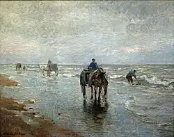 Fischer bei der Arbeit am Strand von Katwijk, o. Dat., Öl auf Leinwand, doubliert, 36 × 53 cm, Museum Kunst der Westküste, Alkersum -