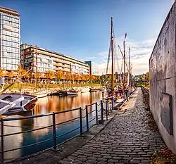 Der Germaniahafen in der Kai-City Kiel in der schleswig-holsteinischen Landeshauptstadt Kiel ist ein Hafenbecken für Gastsegler und Traditionsschiffe in Gaarden-Ost, das 1998 fertiggestellt wurde. Der Germaniahafen ist 28 Meter breit und 130 Meter lang.[1] Er liegt direkt gegenüber dem Hauptbahnhof, ist von dort über die Hörnbrücke direkt erreichbar und praktisch ein Seitenarm der Hörn. Bei der Errichtung des Hafens wurde besonderes Augenmerk auf ökologische Nachhaltigkeit gelegt. In unmittelbarer Nähe wurde 2007 das Hochhauscenter am Germaniahafen fertiggestellt. Es beherbergt Gastronomiebetriebe, Musikkneipen, Büros und Wohnungen. An seinem südlichen Ende befindet sich die Skulptur Adam und Eva des Künstlers Bjørn Nørgaard.
