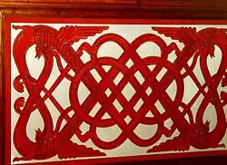 - Urnesstil vom 11. bis 12. Jahrhundert: Letzte ‚nordische’ Stilphase – bezeichnet nach den Fragmenten der ersten Kirche von Urnes in Sogn, Norwegen. Extrem stilisierte Vierbeiner, bandförmige Tiere und Schlangen. Der geflügelte Drache tritt zum ersten Mal in Skandinavien auf, möglicherweise nach angelsächsischen Vorbildern. Prinzip: offene Achterschlaufen und ein System aus mehreren Schlaufen, die ineinander greifen, nur zwei Linienstärken, Köpfe und Füße zu langschmalen Enden vereinfacht.