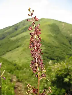 In rispigen Blütenständen stehen viele Blüten zusammen. Die dreizähligen Blüten sind meist zwittrig, die oberen eines Blütenstandes manchmal rein männlich. Die sechs haltbaren Blütenhüllblätter sind ausgebreitet, nicht verwachsen und von weißer, grünlicher, rötlich-brauner oder schwarzer Farbe. Es gibt sechs Staubblätter. Die drei freien Griffel sind kurz und haltbar.[2]
