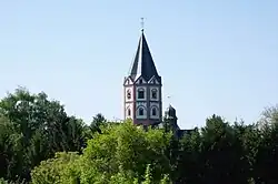 Zu Beginn des 13. Jahrhunderts wurde mit dem Bau einer neuen großen Stiftskirche begonnen. Vermutlich im Jahre 1236 wurde sie, die heutige Basilika St. Margareta, eingeweiht. Südlich davon, auf dem Gerricusplatz, stand die viel kleinere Pfarrkirche von 1142. Für die Verwaltung und Vertretung nach außen war ein Vogt zuständig. Möglicherweise war der im Jahre 1056 genannte Vogt Adolf identisch mit dem gleichnamigen Vogt des Klosters Werden, Adolf von Berg.[9] 1298 wurde das erste steinerne Wohnhaus erwähnt. Verwaltungsmäßig gehörte der Ort zum 1363 gegründeten Amt Mettmann.