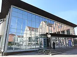 Das verfallene Bahnhofsgebäude von 1845 aus der Zeit des Streckenbaus wurde 2016 abgerissen.[24] Auf der Westseite der Gleise befindet sich seit 2013 ein Park-and-ride-Parkplatz für knapp einhundert Fahrzeuge.