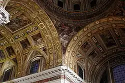Die von Ignazio di Nardo gebaute Kuppel wird durch eine Stahlbetonkonstruktion gestützt; sie hat eine kugelförmige Kalotte, die von lünettenförmigen Fenstern unterbrochen ist. Die Stuckverzierungen nehmen das Motiv der Kassetten wieder auf, und in den Zwickeln der falschen Kuppel sind Fresken der vier Evangelisten zu sehen, die noch von der Ausmalung durch Giovanni Lanfranco um 1630 stammen.[6]
