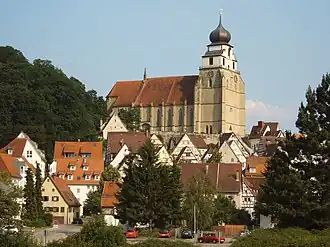 Die zu Beginn des 13. Jahrhunderts durch die Pfalzgrafen von Tübingen gegründete Stadt zeichnet sich durch ihre topographisch und genetisch bedingte Zweiteiligkeit aus. Überragt wird der Ort von der auf einem Sporn sitzenden Schlossruine mit markanten Schenkelmauern, zwischen denen sich der bestehende Stiftsbezirk aus Kirche, Dekanat und zahlreichen Sonderbauten erstreckt. Unterhalb dieser herrschaftlich und geistlich geprägten Bebauung breitet sich entlang der Hauptachsen, die vom zentralen Marktplatz abgehen, die Bürgerstadt aus. Die Altstadt zeigt eine typisch städtische Bebauung vorwiegend des 17./18. Jahrhunderts, die in den Randbereichen zunehmend ackerbürgerlich und handwerklich geprägt ist.