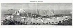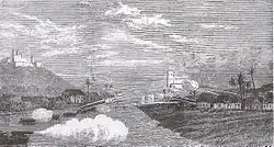 Da die Bevölkerung der Stadt sich rechtzeitig im „Castle“ oder im Umland in Sicherheit gebracht hatte, kam es nicht zu Todesopfern. Die Aschantikrieger versuchten aus der Stadt zu entkommen, aber 200 von ihnen verloren bei den Kämpfen im Umland ihr Leben, im Inland schlugen Briten und Fanti gemeinsam die Aschantiinvasion zurück.[59] Die Briten unterschieden bei der Bombardierung Elminas zwischen „loyalen“ und „illoyalen“ Stadtteilen bzw. Asafos. Vier der acht Asafos der Stadt widersetzten sich den Briten, vier galten als „loyal“. Als illoyal, Kobena Gyan, dem Omanhene von Elmina, treu und die britischen Ansprüche ablehnend, sahen sie den Kern der Stadt westlich von St. George’s Castle an.[60] Dieser Teil wurde bombardiert und anschließend von Verbündeten der Briten aus den umliegenden Fantestaaten geplündert,[61] die Teile nördlich des Benya bleiben verschont. Sie zerstörten damit endgültig die alte Stadt Elmina auf der Halbinsel westlich des Forts.