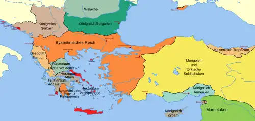 Als im Jahr 1204 das Heer des Vierten Kreuzzuges Konstantinopel eroberte, teilten die Kreuzfahrer Griechenland unter sich auf. Konstantinopel und Thrakien wurden zum Kern des sogenannten Lateinischen Kaiserreiches, während das eigentliche Griechenland in das Königreich Thessaloniki, das Fürstentum Achaia und das Herzogtum Athen gegliedert wurde. Die Ägäischen Inseln wurden zu einem Herzogtum unter venezianischer Oberhoheit. Zu diesen Staaten kam als einer der drei unmittelbar dem Byzantinischen Reich nachfolgenden Staaten das Despotat Epirus.
