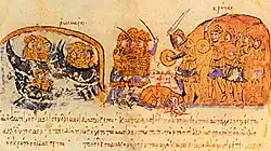 - ↑ Michael Wilhelm Weithmann: Slaven auf der griechischen Halbinsel. Tofenik 1978, S. 27 und S. 147 bezieht sich auf die Chronik des Thomas Presbyter von Emesa aus dem 7. Jahrhundert (E. W. Brooks, I. B. Chabot (Hrsg.): Corpus Scriptorum Christianorum Orientalium. Löwen 1907, 115). Hingegen sprechen ihnen Klaus Gallas, Klaus Wessel, Manolis Borboudakis: Byzantinisches Kreta, Hirmer, 1983, S. 16, jede Siedlungsintention ab, sondern halten sie für Plünderer.
