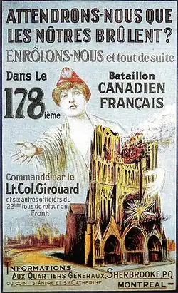 Kanada, zu dieser Zeit noch kein souveräner Staat mit eigenständiger Außenpolitik, trat als Teil des britischen Empire bereits im Sommer 1914 in den Ersten Weltkrieg ein. Das Land wurde gerade von einer Rezession heimgesucht, so dass sich auf die ersten Aufrufe hin eine Vielzahl von Arbeits- und Beschäftigungslosen zu den Fahnen meldeten. Die Prärieprovinzen waren im Sommer 1914 vom zweiten Dürrejahr in Folge betroffen. Frankokanadier meldeten sich aus verschiedenen Gründen in weniger großer Zahl zu den Streitkräften. Für den Kampfeinsatz wurde im August 1914 ein eigenes Canadian Expeditionary Force gegründet, das 1915 am Kriegsschauplatz eintraf.