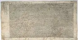 Kurz vor seinem Tod stellte Mieszko 991 sein Land unter den Schutz des Papstes (Donatio Poloniæ), wodurch Polen ein päpstliches Lehen wurde. Damit wollte Mieszko möglicherweise seine Unabhängigkeit vom mächtigen westlichen Nachbarn demonstrieren.[21] Als eine wichtige Quelle zur Gründung bzw. Anerkennung eines polnischen Staates gilt das sogenannte Dagome-iudex-Regest, obwohl er darin nicht explizit erwähnt wird.[22] Man geht davon aus, dass in der Eintragung eines Mönchs aus den Jahren 1086/1087 ein Schenkungsakt des Herzogs Mieszko I. an den Apostolischen Stuhl aus dem Jahr 991 beschrieben wird, mit dem Mieszko seine Stadt oder sein Land dem direkten Schutz des Papstes unterstellt. An der Krakauer Akademie wurde die Urkunde als Schenkung Odas bezeichnet.
