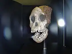 In Südafrika wurden diverse Funde von Vormenschen entdeckt, die zu den frühesten Zeugnissen der Hominisation gehören. Funde von frühen Vorfahren des Menschen, Hominini der Art Australopithecus africanus, werden auf ein Alter von etwa 3,3 bis 3,5,[6] einer neueren Schätzung zufolge sogar von etwa 4 Millionen Jahren[7] datiert. Besonders prominente Funde dieser fossilen Art sind das „Kind von Taung“ und „Mrs. Ples“; das besonders vollständige Fossil „Little Foot“ gehört hingegen vermutlich einer zweiten südafrikanischen Australopithecus-Art an. Die als „Wiege der Menschheit“ bezeichneten, zum Weltkulturerbe zählenden Höhlen von Sterkfontein, Kromdraai, Swartkrans und Makapansgat sind die bedeutendsten Fundstellen Südafrikas. In der Höhle Rising Star wurde die Art Homo naledi entdeckt. Die ältesten Funde des Homo erectus aus Swartkrans sind rund eine Million Jahre alt, der altsteinzeitliche moderne Mensch (Homo sapiens) ist im südlichen Afrika – wie die Hinterlassenschaften der sogenannten Pinnacle-Point-Menschen belegen – schon seit 165.000 Jahren nachweisbar. Als Bindeglied zu den außerafrikanischen Vertretern des modernen Menschen gilt der rund 36.000 Jahre alte Hofmeyr-Schädel.
