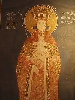 Simonida, Tochter des Byzantinischen Kaisers Andronikos II., wurde 1305 Stefan Uroš II. Milutin angetraut. Zum Zeitpunkt ihrer Vermählung war sie erst 6 Jahre alt. Fresko im Kloster Gračanica