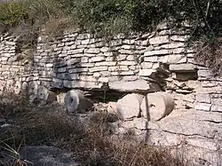 Vor allem im Westen ist die Kupferzeit durch vielfach gegliederte Befestigungsanlagen mit zweifach geschalten Mauern gekennzeichnet.[26] Zu diesen zählen Los Millares (Almería), Marroquíes Bajos (Jaén) und Valencina de la Concepción (Sevilla). Die Kultur des 3. und frühen 2. Jahrtausends v. Chr. baute Wein und Oliven an und produzierte eine mit Symbolen verzierte Keramik, die sich vor allem in Megalithanlagen und Kuppelgräbern fand.