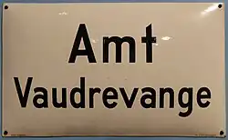 Im ausgehenden Mittelalter besaß Wallerfangen nun Stadtrecht und war unter dem Namen „Walderfingen“ Amtssitz des Deutschen Bellistums, einer Verwaltungsuntergliederung des Herzogtums Lothringen. Daneben wurde der französische Name Vaudrevange gebraucht. Ab dem Ende des 13. Jahrhunderts bis in die frühe Neuzeit war Wallerfangen („Walderfang“, „Walderfingen“) eine mit Mauern umwehrte herzoglich-lothringische Provinzhauptstadt. Ihr Einflussbereich, der deutschsprachige Teil des Herzogtums Lothringen mit Namen „Baillage d’Allemagne“, erstreckte sich im frühen 17. Jahrhundert bis weit in das heutige Frankreich hinein. Wallerfangen war eine Stadt der „Blaugräber“, deren Produkt, die blaue Farbe Azurit, gefördert aus senkrechten Schächten und unter Nutzung der überkommenen römischen Stollen, in ganz Europa verkauft wurde. Albrecht Dürer soll mit „Wallerfanger Blau“ gemalt haben.[24][25]