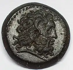 Münzprägung setzt auf Zypern nach dem ionischen Aufstand ein. Die ersten Münzen tragen Legenden in zypriotischer Silbenschrift, auf späteren Prägungen finden sich teilweise auch Legenden in phönizischer Schrift. Stasioikos II. (330–312 v. Chr.), der letzte König von Marion, prägte Münzen mit Inschriften in beiden Schriftsystemen, kyprischer Silbenschrift und phönizischer Alphabetschrift.[25] Auf den Münzen von Lapithos wird, außer in den Prägungen von Praxippos, durchgehend die phönizische Schrift verwendet.[26]