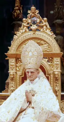 - ↑ Er schritt „mit großer Entschlossenheit auf dem Weg der Ökumene voran, indem er die verschiedenen Initiativen Kardinal Beas unterstützte, Kontakte und Gedankenaustausch mit den Verantwortlichen der getrennten Kirchen verstärkte und sogar offiziell die Zusammenarbeit mit dem Ökumenischen Rat der Kirchen aufnahm. Auch gründete er im Frühjahr 1965 ein Sekretariat für die Nichtgläubigen unter dem Vorsitz von Kardinal König, um auf diese Weise einen Dialog mit den Atheisten anzuregen.“ in: Aubert und Soetens: Der Konzilsverlauf in: Christentum, 2002, S. 59 f.