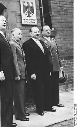 Bei Gründung der Bundeswehr stammten deren Offiziere und Unteroffiziere fast ausnahmslos aus der Wehrmacht – teilweise auch aus der Waffen-SS.[5][6] Im Jahre 1959 waren von 14.900 Bundeswehroffizieren 12.360 bereits in der Reichswehr oder Wehrmacht zu Offizieren ernannt worden. 300 Offiziere entstammten der Waffen-SS.[7][8]