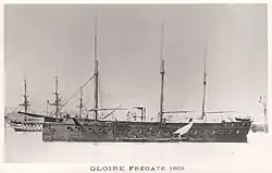 Unter Kaiser Napoleon III. verbesserte sich das Verhältnis zu Großbritannien; gemeinsam führten beide Flotten und Landheere Kriege gegen Russland (1853–1856), China (1856–1860), Mexiko (1861–1862) und Japan (1864). Der Ingenieur Paixhans modernisierte die Schiffsartillerie und widmete sich der Taktik, dass auch eine kleine, aber schlagkräftige Flotte es mit einer deutlich größeren aufnehmen könne. Die Flotte und die fünf Hauptkriegshäfen wurden immer weiter aufgerüstet und modernisiert.[36] Die Napoléon war 1850 das erste dampfgetriebene Kriegsschiff der Welt, 1858 bauten französische Schiffbauingenieure mit der La Gloire das erste gepanzerte Kriegsschiff der Welt, und 1863 stellte die französische Marine mit der Plongeur das erste U-Boot in Dienst. Auch der 1869 fertigstellte und vor allem mit französischem Kapital erfolgte Bau des Sueskanals diente französischen maritimen Interessen.