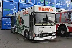 1964 hatte die Zahl der Verkaufswagen, die vor allem die ländlichen Regionen der Schweiz erschlossen, mit 144 ihren Höchststand erreicht.[74] Wegen des dichter werdenden Filialnetzes nahm sie daraufhin kontinuierlich ab, im Jahr 1994 standen aber noch immer 80 Wagen im Einsatz.[75] Dieses Angebot war wegen der hohen Anschaffungs- und Unterhaltskosten immer weniger rentabel, sodass die Genossenschaften ihre Fahrzeugflotten nicht mehr erneuerten. Zudem zogen es immer mehr Kunden vor, mit dem Auto zu den grossen Filialen in den Zentren zu fahren. 2001 blieben nur noch zwei Verkaufswagen im Kanton Wallis übrig. Mit ihren letzten Fahrten am 30. November 2007 endete nach 82 Jahren die Ära der rollenden Läden.[76] 2009 gab es Überlegungen, einzelne Verkaufswagen zu Marketingzwecken zu reaktivieren, doch erst nach längerer Suche konnten drei erhalten gebliebene Exemplare wiedergefunden und restauriert werden. Diese werden seither bei Grossveranstaltungen oder als Ersatz bei Ladenumbauten eingesetzt.[77]