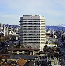 In den ersten Jahren ihres Bestehens war die Migros für ihren Ausbau regelmässig auf Fremdkapital angewiesen, weshalb sie 1928 Anleihen herauszugeben begann. Der Umfang der Finanzaktivitäten nahm in der Nachkriegszeit sprunghaft zu, weshalb der MGB 1957 die Gründung einer eigenen Bank beschloss. Im Februar 1958 nahm die Migros Bank ihre Geschäftstätigkeit auf. Ihr Ziel war es, auch in der Finanzwirtschaft Kartelle und Preisabsprachen unter Druck zu setzen. Ab 1972 war sie auch in Düsseldorf vertreten.[137] Die einzige ausländische Filiale konnte die in sie gesteckten Erwartungen jedoch nie ganz erfüllen und wurde im März 1992 an die Stadtsparkasse Düsseldorf verkauft. Sechs Jahrzehnte nach ihrer Gründung zählt die Migros Bank über 70 Filialen in der Schweiz und erweist sich als sehr profitabel, da sie rund die Hälfte des Gewinns der gesamten Migros-Gruppe erwirtschaftet.[138]