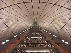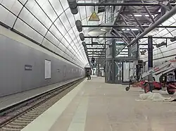 Der Schnellbahnanschluss des Flughafens wurde seit den 1960er Jahren diskutiert, u. a. berücksichtigten bereits die Planungen für die ursprüngliche U-Bahn-Linie 4 die Möglichkeit einer Verlängerung bis zum Flughafen, die Ende der 1970er Jahre zur Verfügung hätte stehen können. Nach Aussetzung des Baus der U4 blieb der Flughafen jedoch weiterhin ohne Schnellbahnanschluss. Der weitere Planungsfortschritt verlief u. a. deshalb schleppend, weil bis in die 1980er Jahre der Bau eines neuen Großflughafens bei Kaltenkirchen geplant war, der den bisherigen Hamburger Flughafen hätte ersetzen können. Mit der Perspektive auf baldige Aufgabe Fuhlsbüttels bestand keine dringende Notwendigkeit zum Anschluss.[7] Erst nachdem die Planungen für den neuen Flughafen nicht weiter verfolgt wurden, wurde Ende der 1980er Jahre erneut ein Schnellbahnanschluss untersucht, aufgrund von Finanzierungsproblemen kamen die Konzepte jedoch nicht über Projektstudien hinaus. Gleichwohl wurde bereits 1991 ein Teil der Station am Flughafen im Rohbau errichtet. Der entscheidende Impuls zum Anschluss ging von der Entscheidung des Senates zum Ausbau des Flughafens im Jahr 1998 aus. Aufgrund von Anwohnerklagen gegen das Vorhaben konnten die Bauarbeiten erst nach einer rund zweijährigen Verzögerung am 11. April 2001 begonnen werden. Die Fertigstellung war nach optimistischen Schätzungen und unter Berücksichtigung der klagebedingten Verspätungen bereits für 2005[8], nach Wassereinbrüchen während der Bauarbeiten für 2007 vorgesehen und erfolgte tatsächlich am 12. Dezember 2008. Bereits am Tag vor der Aufnahme des Regelbetriebs wurden jedoch kostenlose Kennenlernfahrten zur Station angeboten.