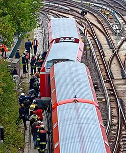 Am 11. Oktober 2009 entgleiste gegen 16 Uhr der fünfte von sechs Wagen eines Zuges der Baureihe 474.3 auf der Linie S3 aus Pinneberg kommend kurz vor dem Bahnhof Altona.[19] Der entgleiste Wagen riss die Stromschiene auf 300 Metern aus ihrer Fassung und brachte den Zug so zum Stehen. Die rund 200 Fahrgäste des Zuges wurden weitestgehend unversehrt evakuiert, ein Passagier und der Triebwagenführer erlitten leichte Verletzungen. Die Ursache für die Entgleisung wurde nicht geklärt, es wurde jedoch festgestellt, dass die Luftfederung des entgleisten Wagens defekt war.[20] Bis zum 14. Oktober wurde die S3 in Richtung Stade ohne Halt in Altona über den Bahnhof Dammtor umgeleitet.