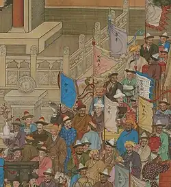 Die Uiguren in der Moderne haben diesen Namen im 20. Jahrhundert so gewählt[A 2] - es handelt sich um eine turksprachige und nahezu geschlossen muslimische ethnische Gruppe mit im turko-persischen Zentralasien verwurzelten Traditionen. Sie bilden die Mehrheitsbevölkerung des Tarimbeckens, wo bereits seit mehreren Jahrhunderten eine turksprachige Bevölkerung vorherrschte.[1] Nach der Eroberung durch die Qing im Jahr 1759 geriet diese uigurische Region schließlich unter chinesische Herrschaft.[1] Seitdem wurden die turksprachigen, sesshaften, muslimischen Einwohner von Altishahr (Süd-Xinjiang)[A 3] – nur unterbrochen von einigen kurzen Perioden der Unabhängigkeit Altishahrs – von einer Reihe chinesischer Staaten regiert[3] und die Region wurde allmählich von einer locker gehaltenen Abhängigkeit unter den Qing in eine streng überwachte, assimilatorische Siedlerkolonie im 21. Jahrhundert umgewandelt, deren Regierung durch eine von Han-Chinesen dominierte Bürokratie übernommen wurde.[1] Das Vorgehen der chinesischen Führung zielt heute nach Einschätzung westlicher Wissenschaftler auf die „Sinisierung“ (中国化) der religiösen und kulturellen Identität der Uiguren und auf die vollständige „Transformation“ (转化) ihrer Gedanken und ihres Verhaltens ab,[4] während das uigurische kulturelle Gedächtnis ausgelöscht werden soll.[5][6] Verschiedene internationale Fachleute sind zu dem Ergebnis gekommen, dass die chinesische Führung die staatliche Verantwortung für einen anhaltenden Genozid gegen die Uiguren trage und gegen die Genozidkonvention von 1948 verstoße.[7][8]