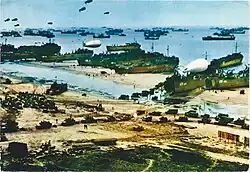 Im Herbst 1917 trafen amerikanische Truppen unter General John Pershing in Frankreich ein. Wilson fasst die Kriegsziele in seinem 14-Punkte-Programm zusammen und forderte darin unter anderem offene Diplomatie, Freiheit der Meere, unbehinderten Welthandel und die Gründung eines Völkerbundes. Der Krieg endete am 11. November 1918 mit nachfolgenden, harten Friedensbedingungen für das Reich, die den Absichten Wilsons widersprachen. Wilson hatte seine Möglichkeiten überschätzt, Frankreich und Großbritannien davon abzuhalten, Deutschland politisch und wirtschaftlich zu sehr zu schwächen.[17]