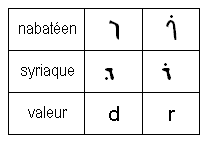 Die nabatäische Schrift wurde entworfen, um 22 Phoneme niederzuschreiben; jedoch besitzt das arabische 28 Phoneme. Daher mussten 6 Buchstaben des Nabatäischen für die Darstellung von je zwei arabischen Phonemen genutzt werden: