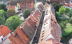 Die 1325 errichtete originelle Krämerbrücke in Erfurt über die Gera gehört ebenso wie die Alte Nahebrücke in Bad Kreuznach und die Innere Brücke in Esslingen am Neckar zu den noch existierenden, mit Wohnhäusern und Läden „überbauten“ Brücken. Auch das Alte Rathaus in Bamberg steht zwischen der Oberen Brücke und der Unteren Brücke in der Regnitz.