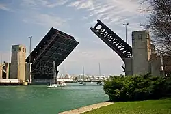 - ↑ Charles Scott, Frances Alexander, John Nicolay: Chicago River Bascule Bridge, Outer Drive, Spanning Chicago River at Outer (Lakeshore) Drive, Chicago, Cook County, IL. Historic American Engineering Record, HAER IL-54, Washington, D.C. 1992; Lake Shore Drive Bridge (Outer Drive Bridge). HistoricBridges.org, abgerufen am 21. Januar 2024.
