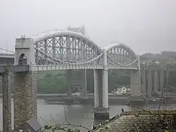 - ↑ Die Bauform einer Bogenbrücke aus Rohren mit Ringen als Aufständerung wurde bei der Brücke über die Tees Barrage (1995) in Stockton-on-Tees wiederbelebt.