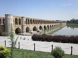 Der Zayandeh Rud hatte als wasserreichster Fluss Zentralirans durch die Jahrhunderte große Bedeutung für die Oase Isfahan. Über den Fluss führen einige wichtige Brücken, die zum Teil auch die Funktion von Dämmen zur Wasserregulierung haben. Die Pol-e Schahrestan ist die älteste dieser Brücken. Ihre Pfeiler stammen möglicherweise aus dem 3. Jahrhundert, die zwölf aus Ziegeln gemauerten Spitzbögen aus dem 11. Jahrhundert. Die Si-o-se Pol (33-Bogen-Brücke; auch als Allah-Verdi-Khan-Brücke bekannt) wurde 1602 durch Schah Abbas I. in Auftrag gegeben, der 1597 seinen Regierungssitz nach Isfahan verlegt hatte. Die 290 m lange und 13,5 m breite Brücke ist ein zweistöckiges Viadukt mit überdachten Arkaden und einem Teehaus an einem Ende. Die 1650 begonnene Pol-e Chādschu ist mit ihren 23 Bögen zwar nur 128 m lang und 11,7 m breit zwar kleiner, macht mit ihren zwei Stockwerken und dem achteckigen zentralen Gebäude aber einen noch geräumigeren Eindruck.