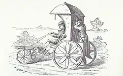 - 1850: Der Schmied Heinrich Färber aus Künzelsau baute ein Schubstockrad, bei dem mit den Armen zwei Stöcke zum Abstoßen vom Boden bewegt wurden und mit den Füßen gelenkt wurde.[35] Je nach Quelle wurde es erst 1859 oder 1869 der Öffentlichkeit präsentiert.[36][37]