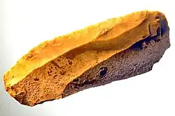 Silexklinge aus den Ausgrabungen im Umfeld des sogenannten Kleinen Hafners auf der Baustelle für das Parkhaus Opéra in Zürich