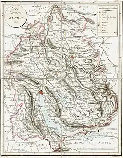 Karte des Kantons Zürich in der Zeit der Helvetik 1798–1803