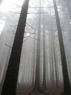 In den 1980er Jahren wurde das Waldsterben im Zusammenhang mit Luftschadstoffen zu einem neuen Problem für die Wälder Mitteleuropas. Entgegen der seinerzeitigen Debatte wurde aber bis ins 21. Jahrhundert eine starke Zunahme des Waldes in Mitteleuropa festgestellt.[10] Die Jahre um die Jahrtausendwende waren primär von der beherrschenden Schadenslage durch den Borkenkäfer an Fichten nach den schweren Stürmen der Epoche (Vivian und Wiebke 1990, Lothar 1999, dann Kyrill 2007, Paula und Emma 2008) geprägt. Ende der 2010er flammte die Debatte um ein Waldsterben wieder auf, nun im Kontext des Klimawandels.