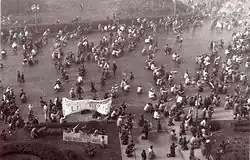 Im Oktober 1920 fand im Zentrum der Stadt ein Generalstreik der Arbeiter statt. Ein Jahr später tagte in Bukarest der Kongress der Sozialistischen Partei. Dabei kam es zur Gründung der Rumänischen Kommunistischen Partei.[76] Am 20. Juli 1927 starb Ferdinand I. Der fünfjährige Enkel Michael I. bestieg daraufhin zum ersten Mal formell für drei Jahre den rumänischen Thron, weil Ferdinands Sohn Karl wegen einer Affäre mit der geschiedenen Jüdin Magda-Elena Lupescuals als kein angemessener Thronfolger angesehen wurde.