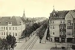 Ebenfalls im September wurde auf der Rennbahn im Norden der Stadt ein Lager für 10.000 Gefangene eingerichtet. Am 4. September 1914 traf der erste Transport mit 7.000 Russen ein. Im Jahr 1915 entstand noch ein weiteres Gefangenenlager in Merzdorf. Bis zu 22.000 Kriegsgefangene konnten in den beiden Lagern interniert werden.[9] Seit Februar 1915 kehrte auch in Cottbus die Not ein. Es wurde Kriegsbrot gebacken, dem 20 % Kartoffelmehl beigemischt wurde. Auch wurden nun die Brotkarte und andere Lebensmittelkarten eingeführt. Im März 1917 führte die Stadt Kriegsnotgeld ein, da es an Kleingeld mangelte. Seit 1917 gehörten Flugzeuge bei Übungsflügen über der Stadt zum allgemeinen Bild. Es wurde ein Militärflugplatz angelegt, Baracken und Flugzeughallen errichtet und die Fliegerersatzabteilung 12 aufgestellt.