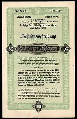 Ein „Wohlfahrtsausschuss“ übernahm im entstehenden Machtvakuum seit 20. Oktober 1918 die Steiermärkische Landesverwaltung.[12] Am 12. November 1918 proklamierte der Sozialdemokrat Ludwig Oberzaucher, vom Balkon des Schauspielhauses vor einer großen Menschenmenge am Freiheitsplatz die Republik. Im Mai 1919 gab es die erste Wahl zur Gemeindevertretung, bei der der Sozialdemokrat Vinzenz Muchitsch Bürgermeister wurde, und es bis zu seiner gewaltsamen Absetzung 1934 auch bleiben sollte.