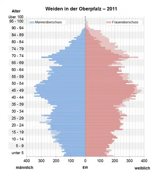 - ↑ Datenbank Zensus 2011, Weiden in der Oberpfalz, Alter + Geschlecht