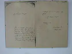 - „Königliche Majestät! Gnädiger Herr und König! / Gestern erhielt ich das gnädige Geschenk für das Stift, bestehend aus einem Klavier und vor einer Woche, durch Zusendung des Baron von Spitzberg, die Zeichenvorlagen von Prof. Schedtle. / Ihre Königin Majestät wollen gnädig erlauben, dass ich dafür unseren unterthänigsten Dank ausdrücke. Ich hoffe das schöne Instrument wird die jungen Mädchen in der Musik ereifern und die Vorlagen sie mäßig anleiten. / Auch erlaube ich mir hiermit noch für den gnädigen Besuch der Königlichen Majestäten im Paulinenstift unterthänig zu danken, mit der Versicherung, dass dem Königshaus im Institut alle Herzen warm entgegen schlagen. / Der Königlichen Majestät Unterthänigste Dienerin Bertha von Kramer / Friedrichshafen den 8. November 1864“