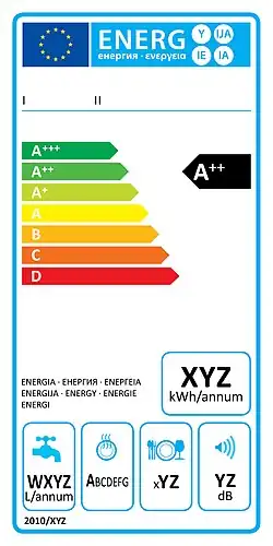 - ↑ Das EU-Energieeffizienzlabel, Energie und Kosten sparen beim Gerätekauf! Ratgeber und Tipps für Kauf und Nutzung, Broschüre der Wirtschaftskammer Österreich und der Austrian Energy Agency