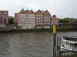 Im Eingangsbereich der Weserburg – von der Bürgermeister-Smidt-Brücke – stehen zwei Objekte des Künstlers Ulrich Rückriem.
