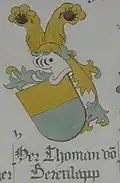 | 43 | von Kilchheim | von Kilchein | Thoman | Adelsgeschlecht[7] | Heinrich Schreiber: Urkundenbuch der Stadt Freiburg im Breisgau | ![]() |