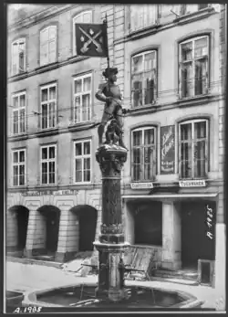 Schützenbrunnen vor dem ehemaligen Haus der Gesellschaft zu Schützen in Bern (um 1900)