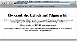 - ↑ Großrazzia gegen Kinox.to-Betreiber. In: Spiegel Online. 27. Oktober 2014, abgerufen am 17. Februar 2024.